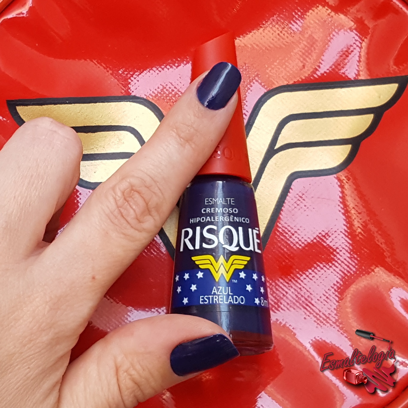O kit vem com as 3 principais cores da coleção: azul, vermelho e dourado que são as cores do famoso traje da Mulher Maravilha.